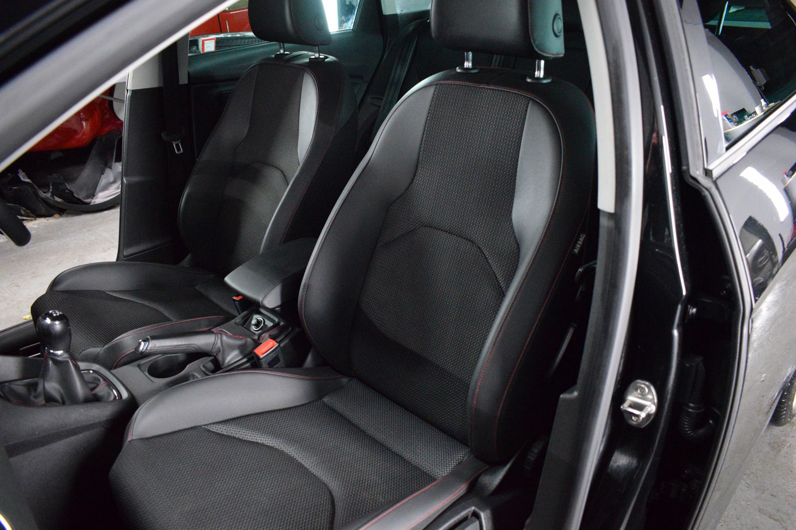 - Steering Wheel - Flat-Bottomed Perforated Leather with Red Stitching and FR Logo